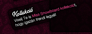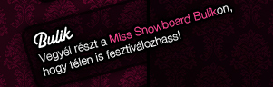A MissSnowboard egy közösség, amit Nektek hoztunk létre, hogy egész évben kapcsolatban legyünk Veletek, kedvezményeket kínáljunk a legtrendibb cuccokhoz, ajánljuk a legjobb snowboardos bulikat, a legbulisabb snowboard utakat, és hogy amikor már mínuszok vannak odakint, havazik és süt a nap, akkor is fesztiválozhassunk, amennyi belefér..